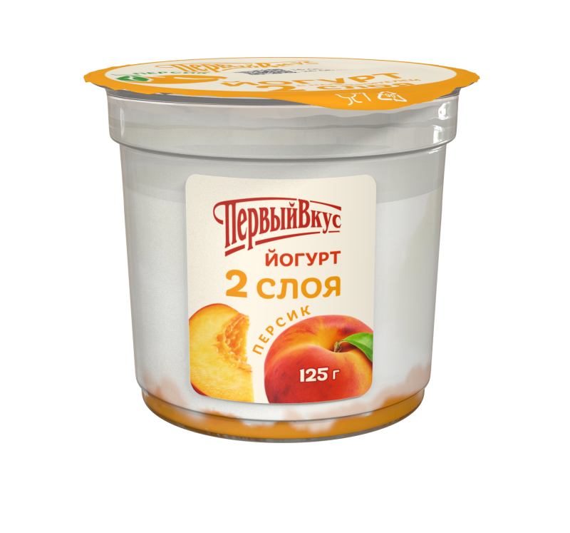 Йогурт Первый вкус 125г 6% двухслойный персик стакан
