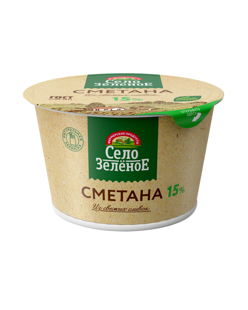 Сметана Село Зеленое 180г 15% стакан