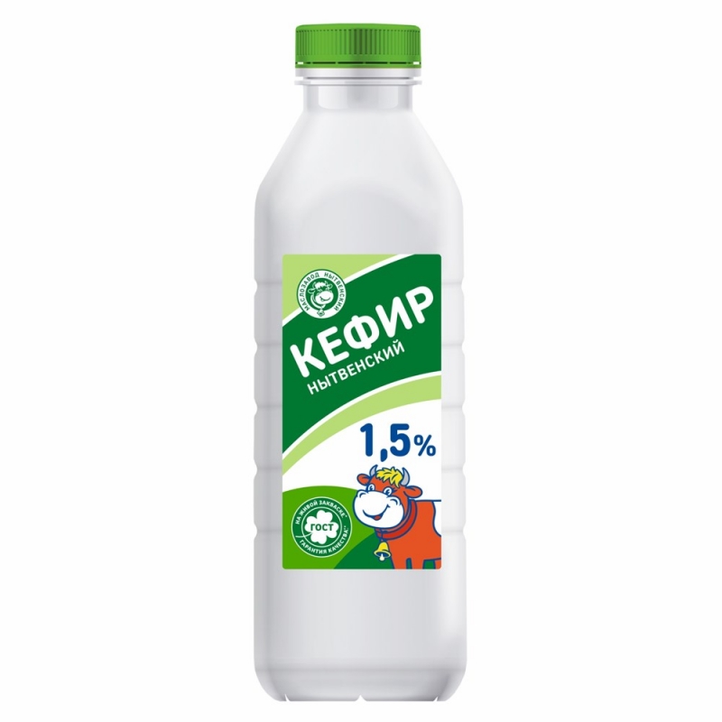 Состав: молоко обезжиренное, молоко цельное, закваска на кефирных грибках. Количество молочнокислых микроорганизмов в готовом продукте в конце срока годности составляет не менее: 1х107 КОЕ в 1г продукта, дрожжей на конец срока годности не менее: 1х104 КОЕ в 1г продукта. Пищевая и энергетическая ценность в 100г: белки 3,0г, жиры 1,5г, углеводы 4г; 41,5ккал. Срок годности 15 суток при температуре от +2°С до +6°С.