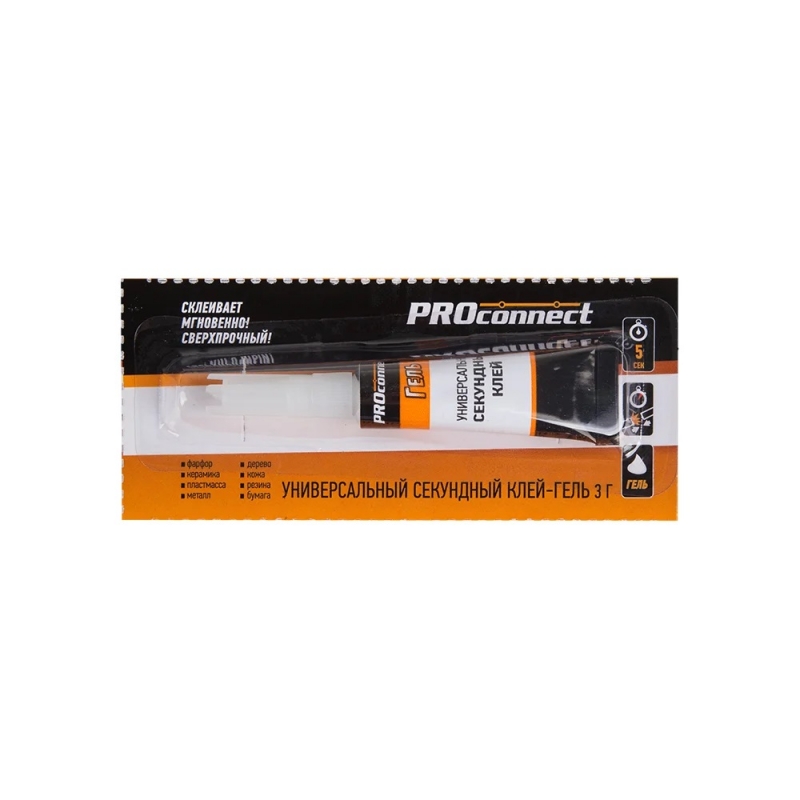 Универсальный секундный клей-гель. Предназначен для склеивания любых материалов: кожа, пластмасса, металл, фарфор, керамика, дерево и т.д. Состав: цианакрилат, добавки. Хранить при температуре от 0оС до +20оС. Срок службы 36 месяцев.