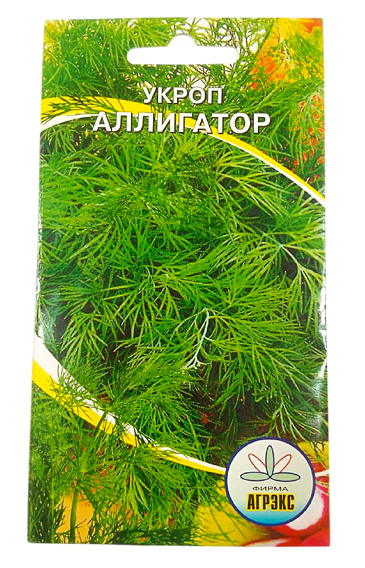 Укроп Аллигатор среднепоздний сорт. Период от всхода до уборки на зелень 42-45дней, на специи 110-115дней. Масса одного растения при уборке на зелень 15-20г, на специи 30-60г.