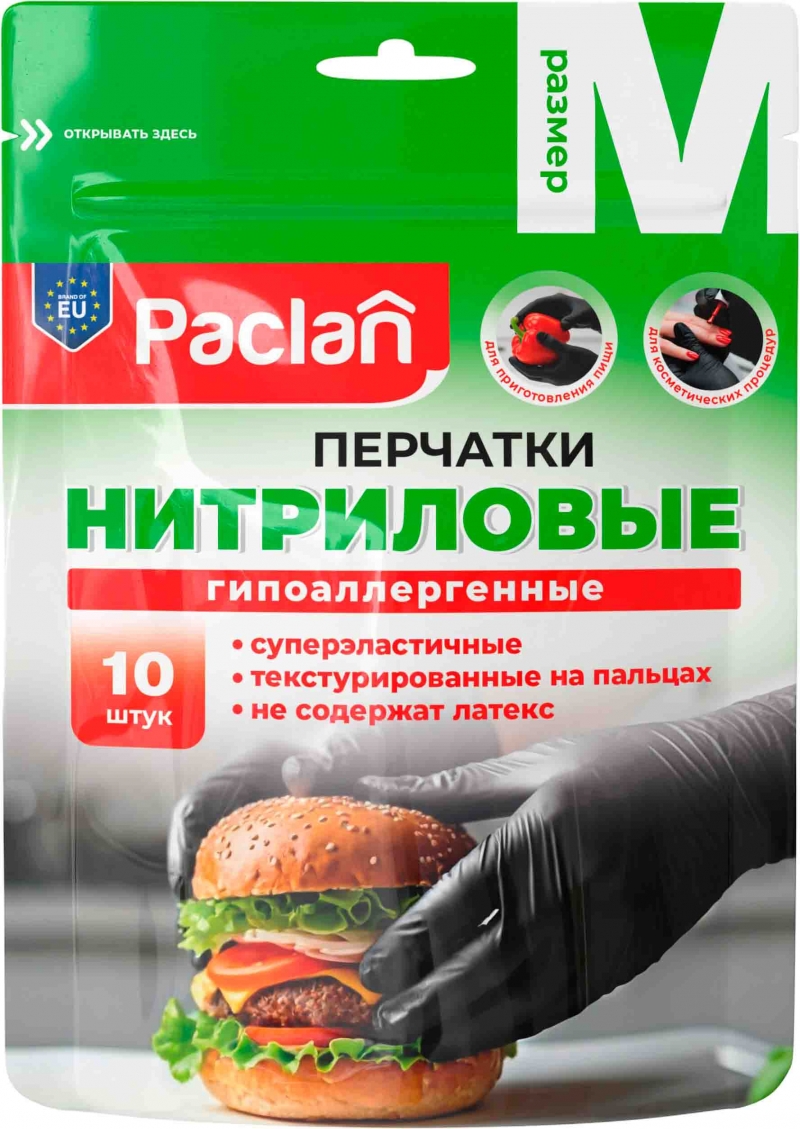 Главная / Каталог / Промышленные товары / Хозтовары / Перчатки / Перчатки нитриловые Паклан Практи 10шт М