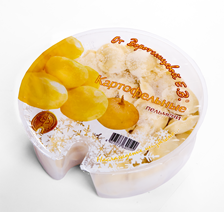 Состав продукта в сыром виде: 64% - фарш, 36% - тесто. Состав фарша: картофель свежий, масло сливочное, масло подсолнечное, лук, соль. Состав теста: мука из твердых сортов пшеницы высшего сорта (дурум), яйцо, вода, соль. Пищевая и энергетическая ценность в 100г: белки 4,42г, жиры 3,9г, углеводы 26,3г; 158ккал. Срок годности 60 суток при температуре не выше -18оС.