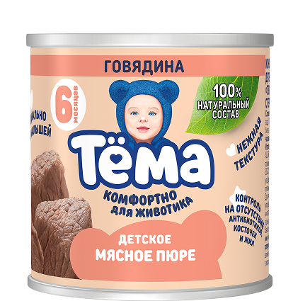 Для питания детей раннего возраста, старше 6-ти месяцев. Состав: говядина, крупа рисовая, масло подсолнечное, вода. Пищевая и энергетическая ценность в 100г: белки 9,8г, жиры 8,2г, углеводы 2,6г; 123ккал. Хранить при температуре от +2оС до +25оС. Срок годности: 24 месяца.