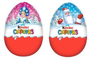 «Kinder Сюрприз Maxi» яйцо из молочного шоколада с внутренним молочным слоем с игрушкой внутри. Состав: сахар, сухое цельное молоко, масло какао, тертое какао, эмульгатор: лецитины, ароматизатор, начинка: сахар, сухое обезжиренное молоко, растительный жир, молочный жир, эмульгатор: лецитины, ароматизатор. Пищевая и энергетическая ценность в 100г: белки 8,1г, жиры 34,2г, углеводы 53,5г; 566ккал. Срок годности 9 месяцев при температуре от +15оС до +22оС.