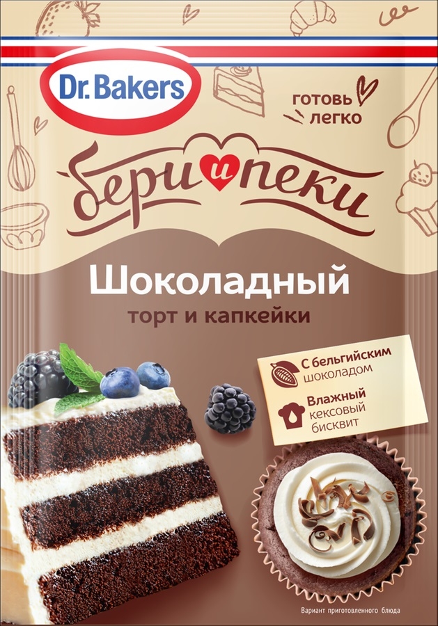 Смесь для бисквита Д-р Бейкерс 45г Шоколадный пакет
