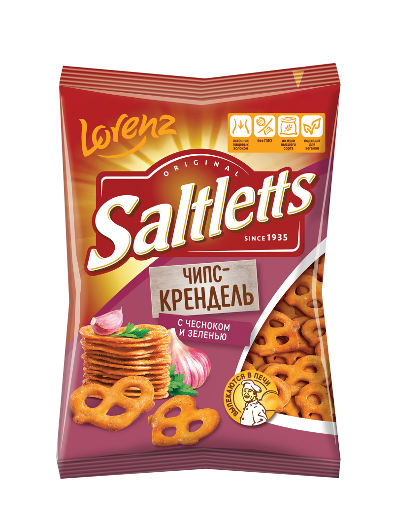 Главная / Каталог / Бакалея / Чипсы, сухарики, снеки / Крендели Лоренц Солтлетс 70г чеснок/зелень