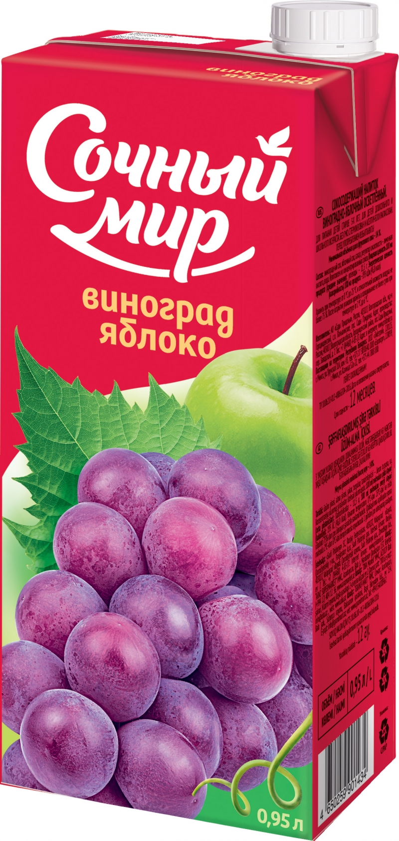 Главная / Каталог / Напитки, соки, воды / Напиток сокосодержащий Сочный мир 0,95л Виноград/яблоко