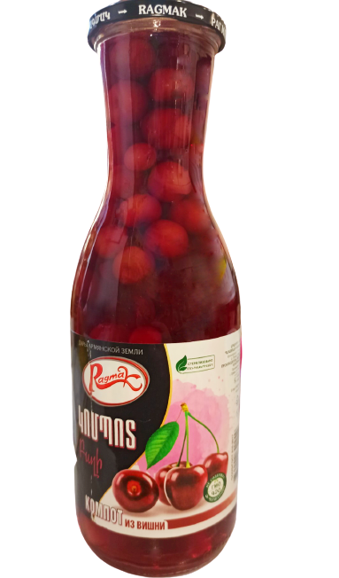 Состав: вишня, сахарный сироп, лимонная кислота (Е-330 регулятор кислотности). Пищевая и энергетическая ценность на 100г: углеводы – 16г, 64ккал. Хранить при температуре от 0°С до +25°С. Срок годности 24 месяца.
