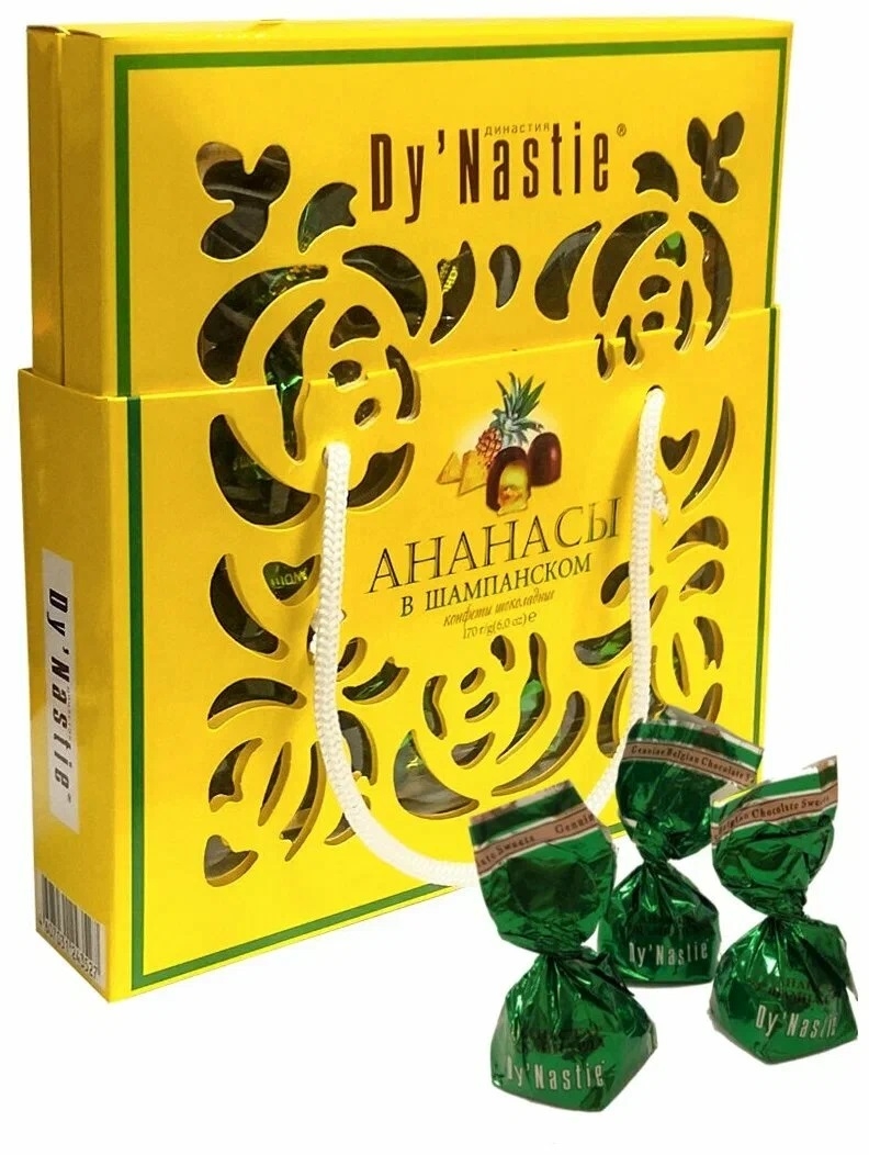 Конфеты Династия 170г Ананас в шампанском сумка