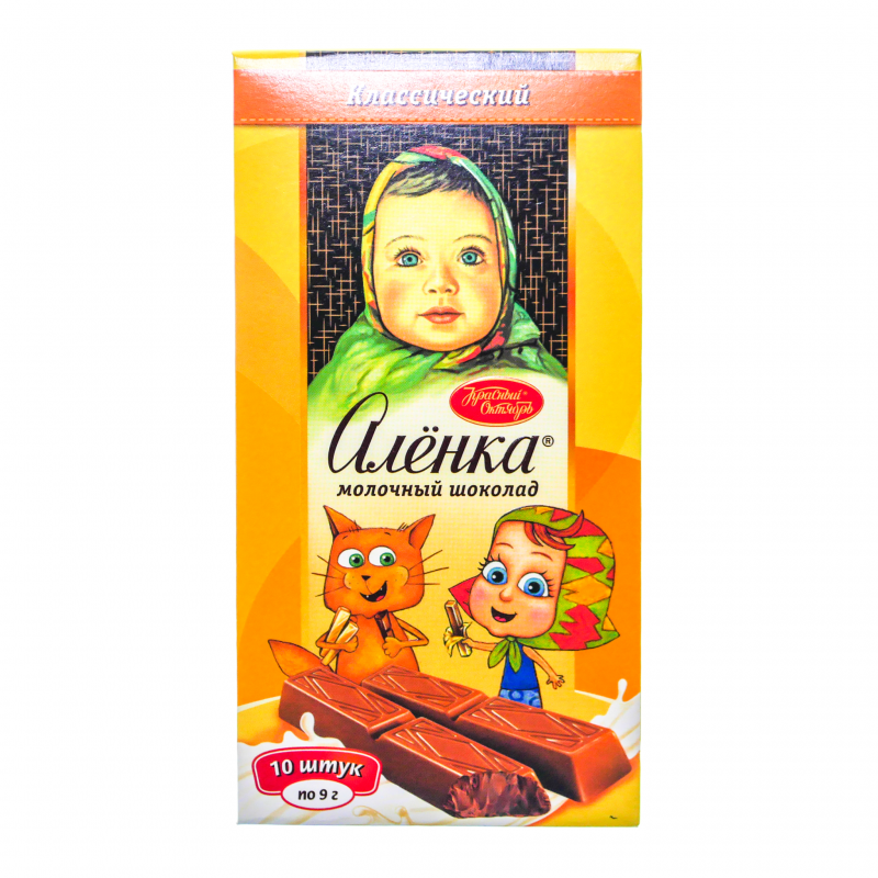 Порционный молочный шоколад Аленка. Состав: сахар, сухое цельное молоко, масло какао, какао тёртое, эмульгаторы: лецитин соевый, E476; ароматизаторы. Возможно наличие арахиса, миндаля, фундука и кешью. Противопоказано при индивидуальной непереносимости белка молока. Пищевая и энергетическая ценность 100г продукта: углеводы 53г, белки 9г, жиры 32г, углеводы 56г; 540ккал. Хранить при температуре от +15оC до +21оC и относительной влажности не более 70%. Срок годности 12 месяцев.