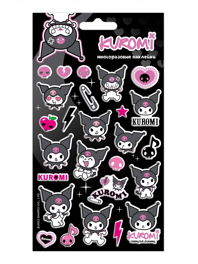 Лист с наклейками из полимерных материалов «Sanrio». Количество: 1шт. Не рекомендуется давать детям младше 3-х лет во избежание попадания мелких деталей в рот или дыхательные пути. Хранить при температуре не выше +30оС. Срок годности 10 лет.