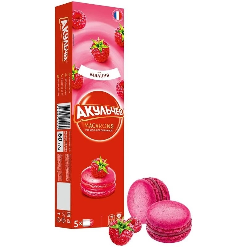 Пирожное Акульчев Макаронс миндальное 60г малина