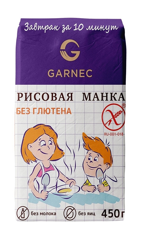 Рисовая манка без глютена представляет собой крупку из риса размером, как манная крупа, не содержит химические добавки и применяется для приготовления в домашних условиях каши. Безглютеновый продукт от российского производителя Гарнец предназначен для людей, соблюдающих безглютеновую диету, в том числе больным целиакией и людей, склонных к аллергии на глютен.