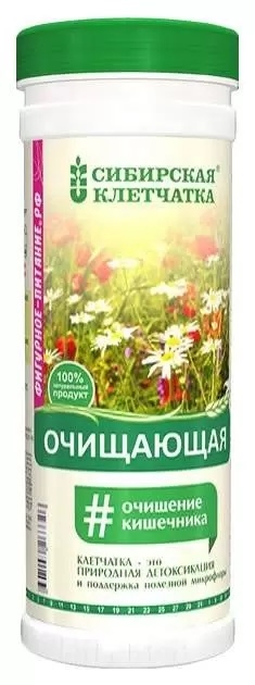 Способствующая улучшению жирового обмена и очищению организма от всевозможных вредных веществ Сибирская клетчатка «Очищающая» содержит в своем составе разнообразный набор экстрактов лекарственных трав, собранных в экологически чистых районах Западной Сибири.
