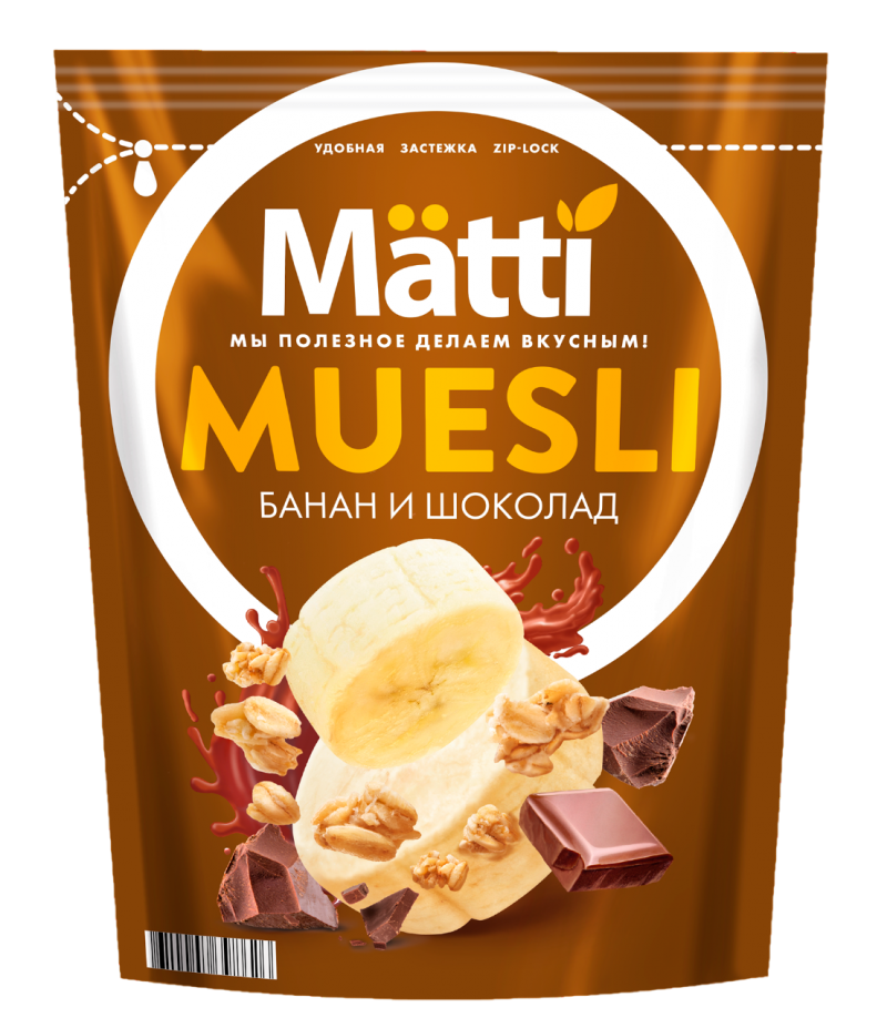 Мюсли Матти 250г с бананом и шоколадом дой-пак