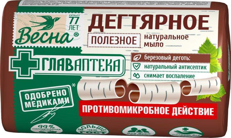Состав: натриевые соли жирных кислот животных жиров, пальмового, кокосового или пальмоядрового масел, вода, глицерин, березовый деготь, хлорид натрия, ЭДТА тетранатрия, гидроксид натрия, C.I. 77266. Срок годности 24 месяца.