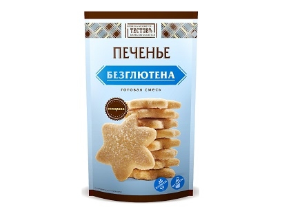 Смесь для приготовления печенья безглютеновая. Состав: мука рисовая, сахар, крахмал кукурузный, мука кукурузная, разрыхлители (E450i, E500ii), стабилизатор (камедь ксантановая), соль, ароматизатор «Ванилин». Возможно наличие следов молока, кунжута, орехов, яичных продуктов. Не содержит глютена. Пищевая и энергетическая ценность в 100г: белки 3,5г, жиры 0,5г, углеводы 85г; 360ккал. Хранить при температуре не выше +25оС. Срок годности 24 месяца.