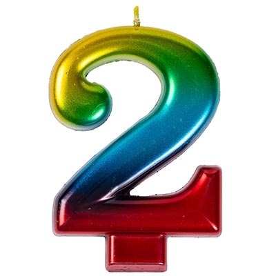 Свеча-цифра Веселая затея Радуга-металлик 8см "2" 1502-3766