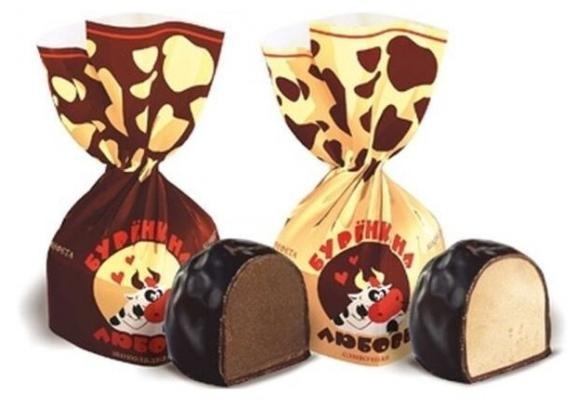 Буренкина любовь Микс. Состав: сахар; сыворотка молочная сухая; патока крахмальная; жир кондитерский (рафинированные дезодорированные растительные масла в натуральном и модифицированном виде, в том числе соевое, эмульгатор лецитин соевый, антиокислитель Е306); какао-порошок; спирт этиловый высшей очистки; эмульгатор: лецитин соевый; комплексная пищевая добавка - антиокислитель (эмульгатор Е432, антиокислители: Е300, Е307, средняя цепь триглицеридов); комплексная пищевая добавка – стабилизационная система (Е407а, Е508); ароматизаторы: "Пломбир", ванилин; корица молотая; глазурь (сахар, заменитель масла какао (рафинированные дезодорированные растительные масла в натуральном и модифицированном виде, в том числе соевое, эмульгаторы Е492, Е322, антиокислитель Е306), какао-порошок, эмульгаторы: Е476, лецитин соевый, комплексная пищевая добавка - антиокислитель (эмульгатор Е432, антиокислители: Е300, Е307, средняя цепь триглицеридов), ароматизатор ванилин). Продукт может содержать следы а