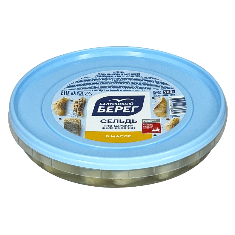 Главная / Каталог / Рыба, морепродукты / Пресервы / Сельдь Балтийский берег По-Царски филе-кусочки 200г в масле