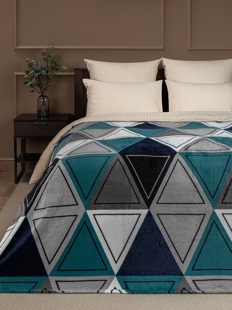 Плед ТексРепаблик 180*200см фланель печатный скрутка Треугольники Зеленый 63499