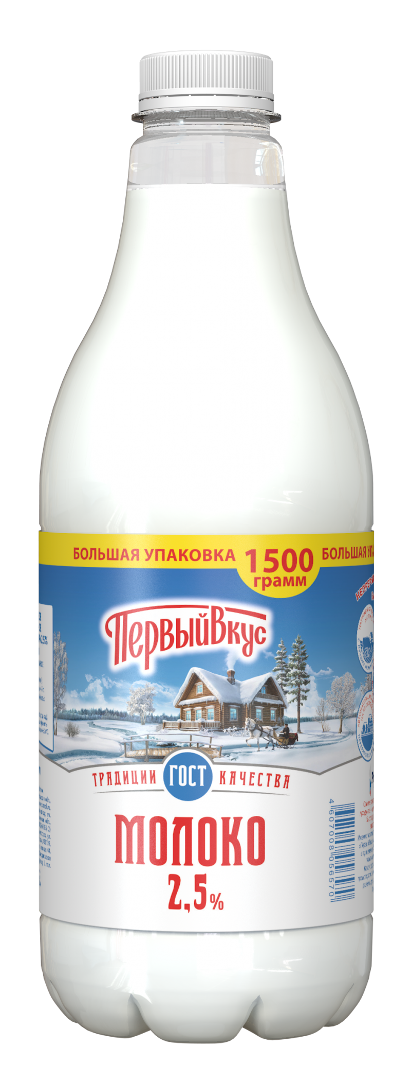 Молоко Первый вкус 1500г 2,5% бутылка