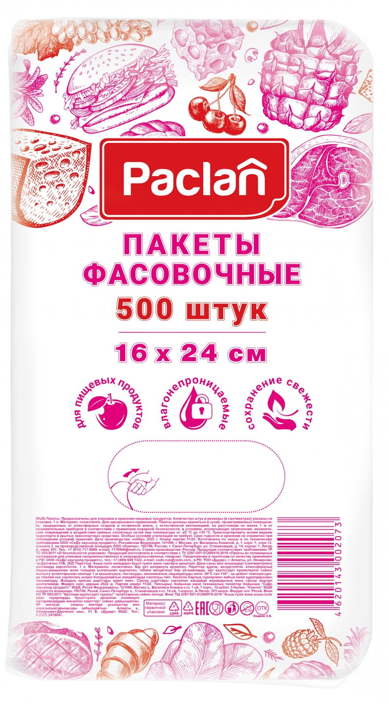 Предназначены для упаковки и хранения пищевых продуктов. Материал: полиэтилен. Срок годности не ограничен.
