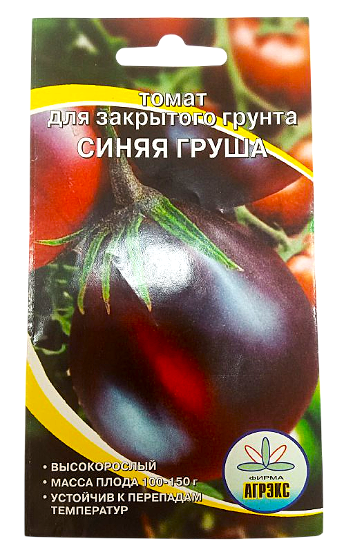 Томат для закрытого грунта Синяя груша. Высокоурожайный сорт с уникальными по форме и цвету плодами. Среднеспелый (111-115 дней). Растение высотой 1,8-2м с редкой листвой. Плоды красно-коричневого, почти шоколадного цвета, массой 100-150г.