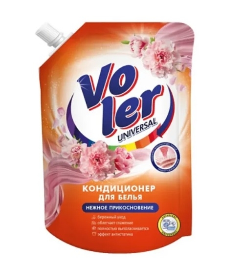 Кондиционер для белья Voler Нежное прикосновение. Состав: подготовленная вода, натриевая соль <1,5%, консерванты <3%, парфюмерная композиция (5% и более, но менее 15%), катионные ПАВ (растительного происхождения). Хранить при температуре от +5°С до +25°С, в недоступном для детей месте, вдали от прямых солнечных лучей, пищевых продуктов и нагревательных приборов. Срок годности 36 месяцев.