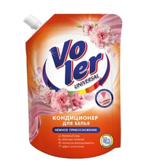 Кондиционер для белья Voler Нежные цветы. Состав: подготовленная вода, натриевая соль <1,5%, консерванты <3%, парфюмерная композиция (5% и более, но менее 15%), катионные ПАВ (растительного происхождения). Хранить при температуре от +5°С до +25°С, в недоступном для детей месте, вдали от прямых солнечных лучей, пищевых продуктов и нагревательных приборов. Срок годности 36 месяцев.