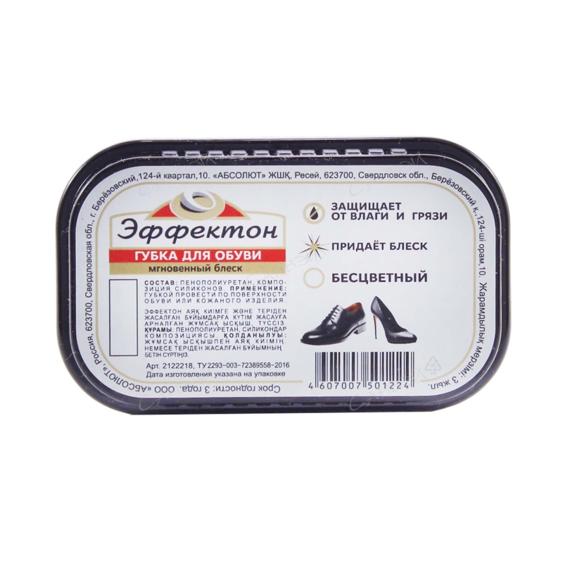 Губка для очистки легких загрязнений, придания блеска и обновления внешнего вида обуви (изделий). Обладает подкрашивающим эффектом и водоотталкивающими свойствами. Состав: полипропилен, поролон, пропитка. Состав пропитки: менее 30%: силиконы, менее 5%: краситель. Не использовать для замши, нубука, велюра, ткани. Не допускать попадания в глаза. Беречь от детей. Хранить при температуре не выше +35%, вдали от прямых солнечных лучей. Срок годности 60 месяцев.