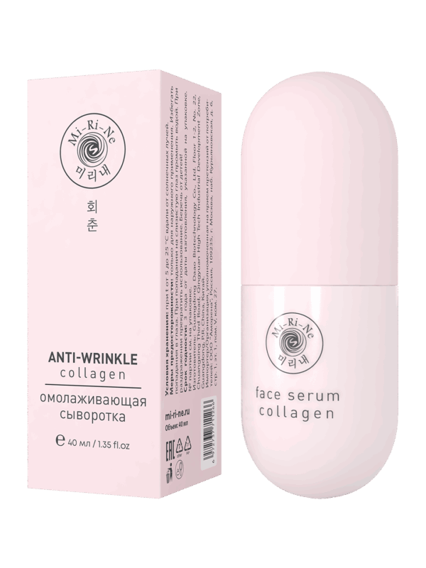 Mi-Ri-Ne Разглаживающая сыворотка против морщин для лица COLLAGEN. Состав: Water, Glycerin, Dimethicone, Betaine, Propylene Glycol, Soluble Collagen, Butylene Glycol, 1,2-Hexanediol, Ethylhexylglycerin, Hydroxyacetophenone, Bifida Ferment Filtrate, Sodium Hyaluronate, Panthenol, Gentiana Scabra Root Extract, Polyacrylamide, C13-14 Isoparaffin, Laureth-7, Cyclopentasiloxane, Cyclohexasiloxane, Glyceryl Glucoside, Sodium Acrylate/Sodium Acryloyldimethyl Taurate Copolymer, Isohexadecane, Polysorbate 80, Sorbitan Oleate, Phenoxyethanol, Isononyl Isononanoate, Chlorphenesin, Xanthan Gum, Fragrance. Хранить при температуре от +5° до +25°С вдали от солнечных лучей. Беречь от детей. Срок годности 3года.