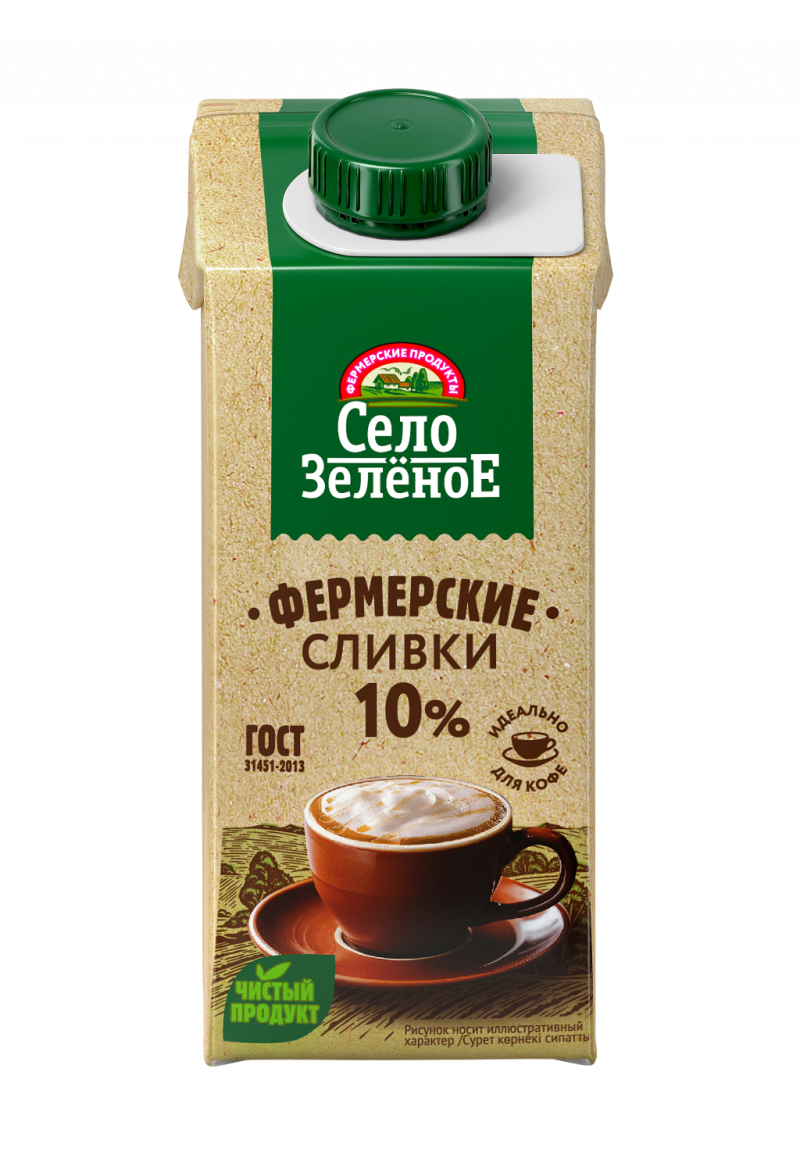 Сливки Село Зеленое 200г 10% стерилизованные тетрапак