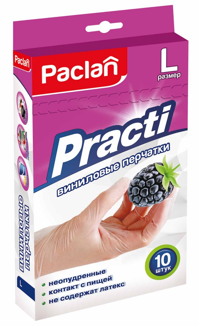Главная / Каталог / Промышленные товары / Хозтовары / Перчатки / Перчатки виниловые Паклан р.L 10шт 407550/407552