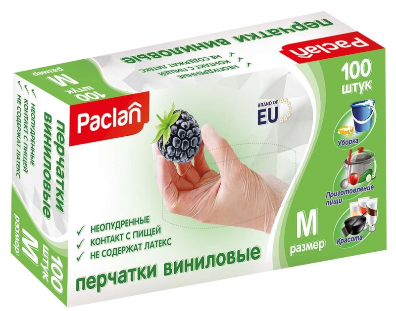 Перчатки виниловые Паклан р.М 100шт 407176/407179