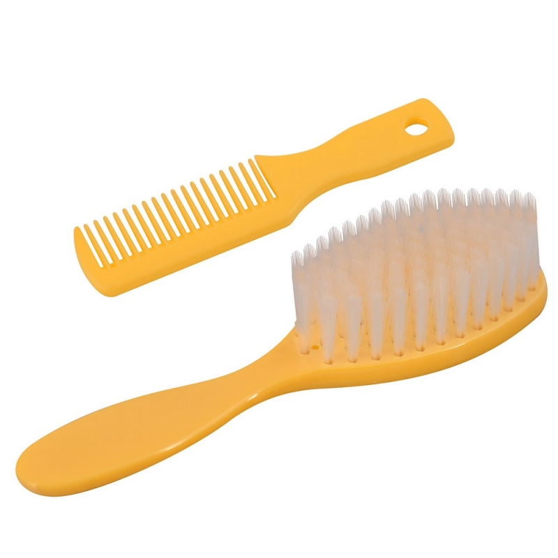 Состав: пластмасса (полипропилен). Длина щетки 15см, длина гребня 12см.