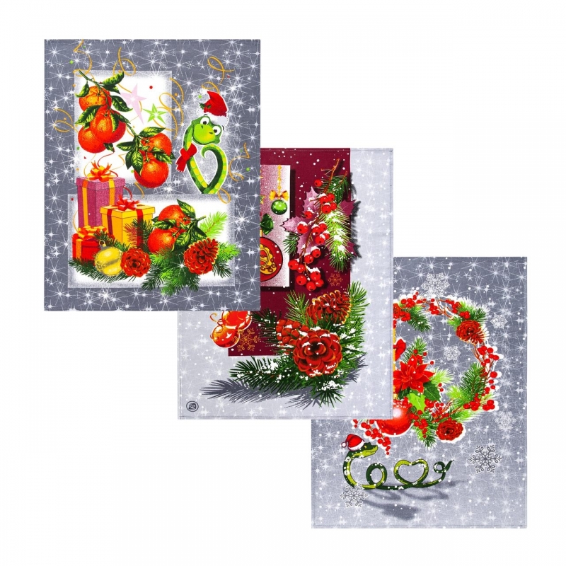 Главная / Каталог / Новогодние подарки / Набор полотенец Подарки 48*60см 3шт рогожка