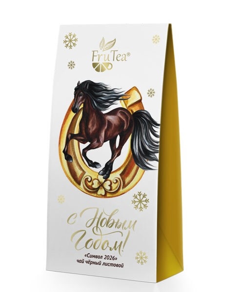 Поздравляем Вас с Новым 2026 Годом! С Годом Лошади! Пусть он принесёт Вам счастье, удачу и благополучие! Великолепный чёрный чай с ярко-красным ароматным настоем и насыщенным мягким вкусом создаст праздничное настроение. Состав: чай черный рассыпной листовой крупный. Хранить при относительной влажности воздуха не более 70%. Срок годности 32 месяца.