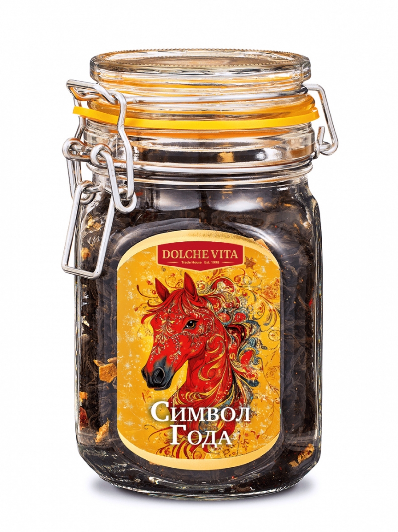 Чай "Символ года" Состав: купаж индийского и цейлонского черного чая и китайского зеленого чай с цветками и бутонами розы, календулы, жасмином, кусочками папаи, шиповника и ананаса, листочками вишни, амаранта и малины, ароматизированный натуральными маслами клубники , малины и винограда. Срок годности 18 месяцев.