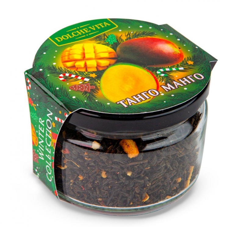 Чай "Танго Манго". Состав: цейлонский и индийский черный крупнолистовой чай, цедра и кусочки апельсина, манго, цветы граната, кусочки яблока, имбирь, натуральный ароматизатор. Срок годности 18 месяцев.
