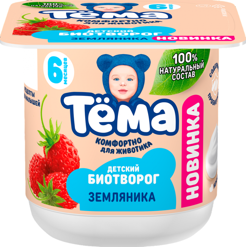 Главная / Каталог / Молочные продукты / Детское молочное питание / Биотворог Тема 95г 4% земляника стакан
