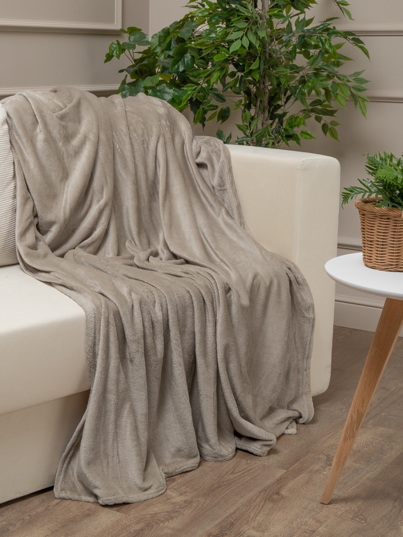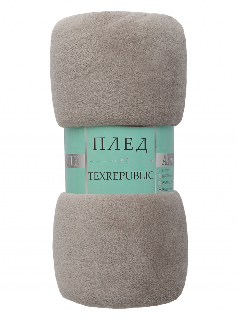 Плед ТексРепаблик 180*200см фланель однотонный скрутка Серо-бежевый 59851