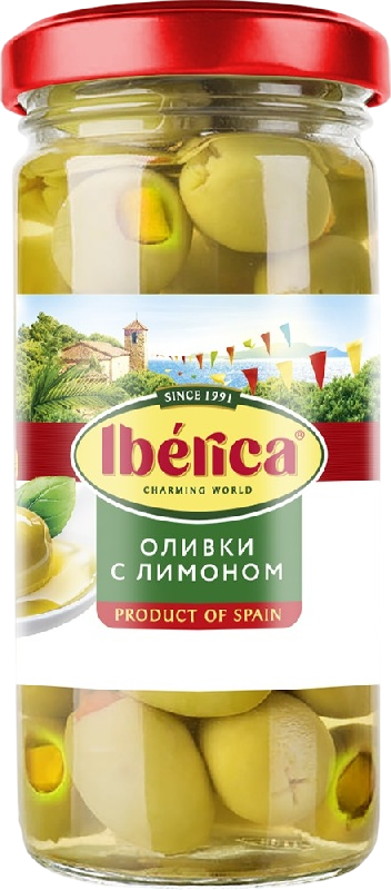 Состав: зеленые оливки, паста из лимонов 14% (вода, лимоны, стабилизатор Е401, Е415, отвердитель Е509, ароматизатор лимон), соль, усилитель вкуса Е621, регуляторы кислотности Е330, антиокислитель Е300. Пищевая и энергетическая ценность в 100г: белки 1,2г, жиры 10г, углеводы 0,5г; 97ккал. Хранить при температуре от +5°С до +25°С. Срок годности 36 месяцев.