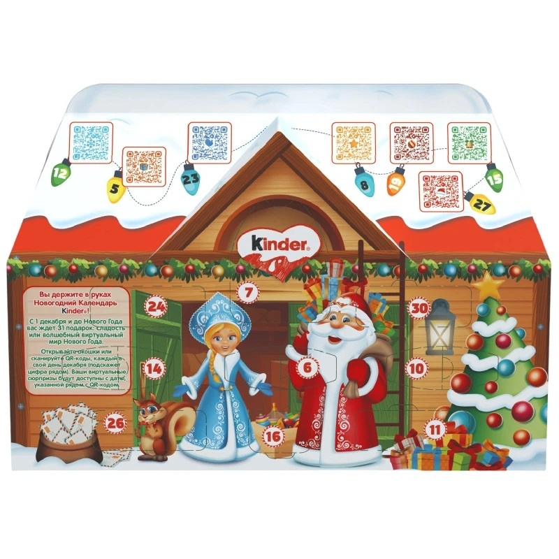 Состав: КОНФЕТЫ KINDER SCHOKO-BONS: сахар, сухое обезжиренное молоко, сухое цельное молоко, масло какао, растительный жир, лесные орехи, тёртое какао, обезвоженный молочный жир, эмульгатор: лецитины, глазирователь: гуммиарабик, глюкозный сироп, ароматизатор, сахар, сухое обезжиренное молоко, сухое цельное молоко, масло какао, растительный жир, лесные орехи, тёртое какао, обезвоженный молочный жир, эмульгатор: лецитины, глазирователь: гуммиарабик, глюкозный сироп, ароматизатор; ФИГУРНЫЙ МОЛОЧНЫЙ ШОКОЛАД KINDER: молочный шоколад (сахар, сухое цельное молоко, масло какао, тертое какао, эмульгатор: лецитины, ароматизатор), сухое обезжиренное молоко, сахар, растительные жиры, молочный жир, эмульгатор: лецитины, ароматизатор, молочный шоколад (сахар, сухое цельное молоко, масло какао, тертое какао, эмульгатор: лецитины, ароматизатор), сухое обезжиренное молоко, сахар, растительные жиры, молочный жир, эмульгатор: лецитины, ароматизатор; KINDER СЮРПРИЗ: молочный шоколад (сахар, сухое цельное м