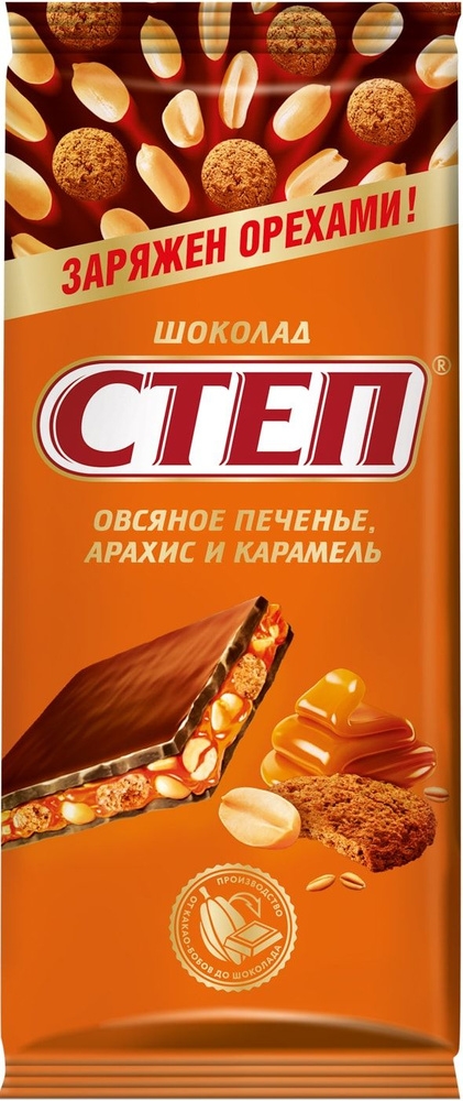 Шоколад Степ 80г молочный овсяное печенье/арахис/карамель