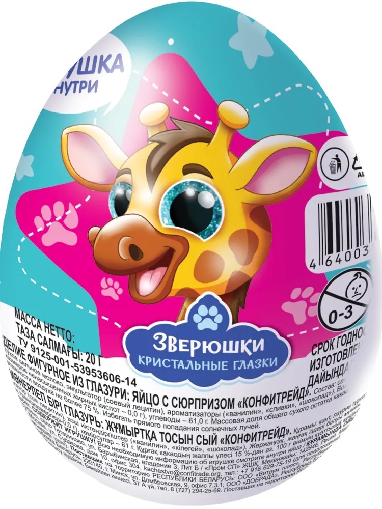 Яйцо из глазури Зверюшки 20г с подарком Конфитрейд