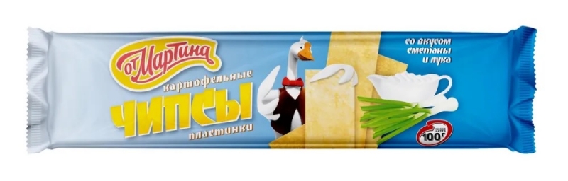 Картофельные пластинки (чипсы) От Мартина со вкусом сметаны и лука. Состав: пюре картофельное сухое, масло подсолнечное, мука пшеничная, крахмал картофельный, ароматизатор пищевой (сыворотка молочная сухая, лук порошок, соль, сахар, усилитель вкуса и аромата глутамат натрия 1- замещенный, натуральные вкусоароматические вещества, вкусоароматические вещества, мальтодекстрин, зелень сушеная,жир растительный, соль. Возможно наличие следов ракообразных, рыбы, сои, сельдерея, горчицы. Хранить в чистых, хорошо вентилируемых помещениях при температуре не выше +25°С и относительной влажности воздуха не более 75%. Срок годности 350 суток.