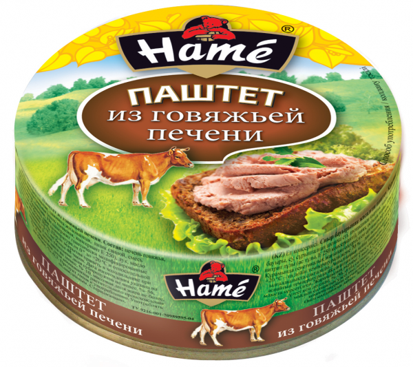 Состав: печень говяжья, мясо свиное, вода, шпик свиной, шкурка свиная, соль, лук, масло растительное, консервант Е250.