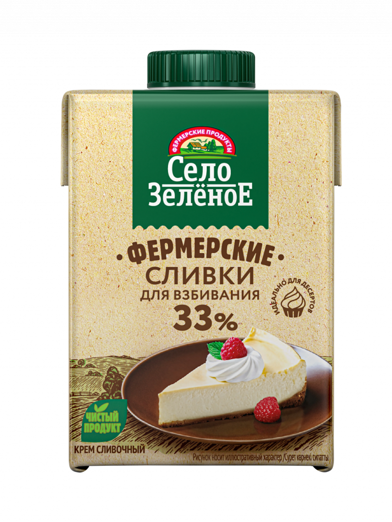 Сливки Село Зеленое 500г 33% для взбивания ультрапастеризованные тетрапак